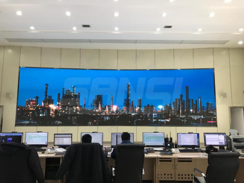 新疆烏石化總部大樓、煉油廠超高清監(jiān)控屏(2018年,三思承建)