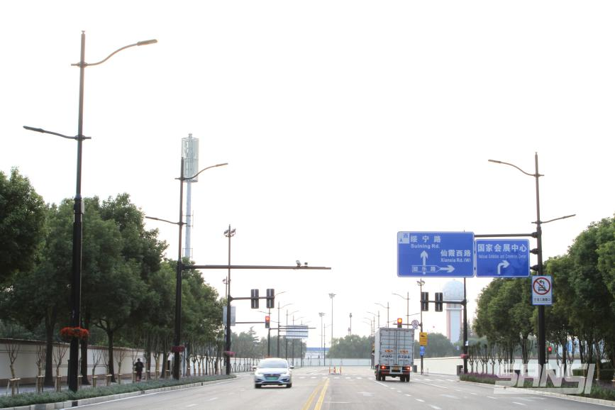 同年首屆進(jìn)博會(huì)期間,上海三思便為國(guó)家會(huì)展中心周邊道路供應(yīng)了500余套“多桿合一”。為保證其周邊道路安全(友樂(lè)路、迎樂(lè)路、聯(lián)虹路、綏寧路等),這些道路均采用了上海三思設(shè)計(jì)制造的新型“多桿合一”及解決方案。
