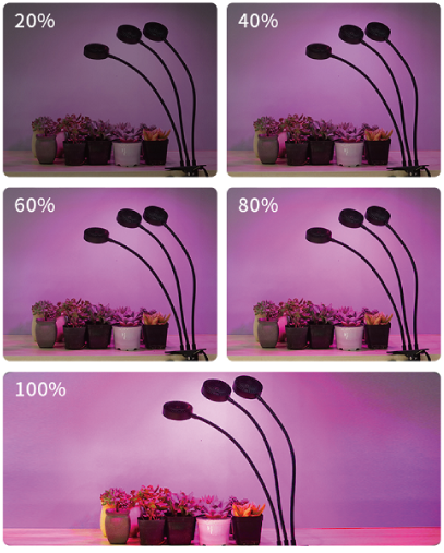 它在不同亮度模式下,所釋放的光子數(shù)目不同,當(dāng)亮度增大時也就意味著光子數(shù)目會增多。您可以通過選擇20%、40%、60%、80%、100%不同亮度,為家里的小番茄、多肉補(bǔ)充光照。