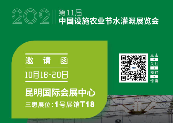 021第11屆中國(guó)設(shè)施農(nóng)業(yè)水灌溉展覽會(huì),三思邀請(qǐng)您前來(lái)參觀-昆明國(guó)際會(huì)展中心,1號(hào)展館T18