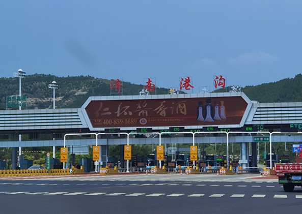 2020年,京滬高速公路萊蕪至臨沂(魯蘇界)改建項目正式通車。該項目路線全長超過232公里。全線主線采用雙向八車道高速公路標準改擴建。京滬高速公路南北線的全線貫通,為濟南的交通提供了便捷的路網管理模式。伴隨著夕陽余暉,行經濟南高速公路港溝收費站,懸于收費站門頭正中的2塊戶外全彩異形大屏(總面積300多㎡)顯得格外吸睛。這2塊戶外商顯正是由三思承建,清晰度極高,色彩鮮艷,可以循環(huán)顯示不同的品牌廣告,因其獨特的形狀構造和優(yōu)質的顯示效果,得到了高度贊賞。