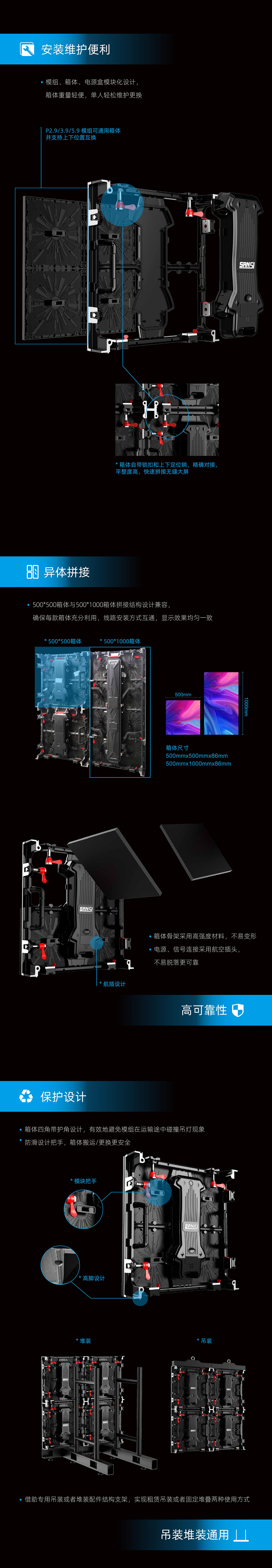 VR系列是為租賃市場量身打造的一款高性價比室內(nèi)全彩顯示屏產(chǎn)品。壓鑄鋁一體成型的箱體輕、薄,平整度高,易拼接、無縫隙,單人可快速安裝。安裝方式靈活,滿足各種不同場合需求。1:1顯示寬高比,輕松拼接不同比例大屏。箱體造型美觀、走線簡潔。適用于大型會議、展覽、演出、企業(yè)活動等各種室內(nèi)活動場景。
